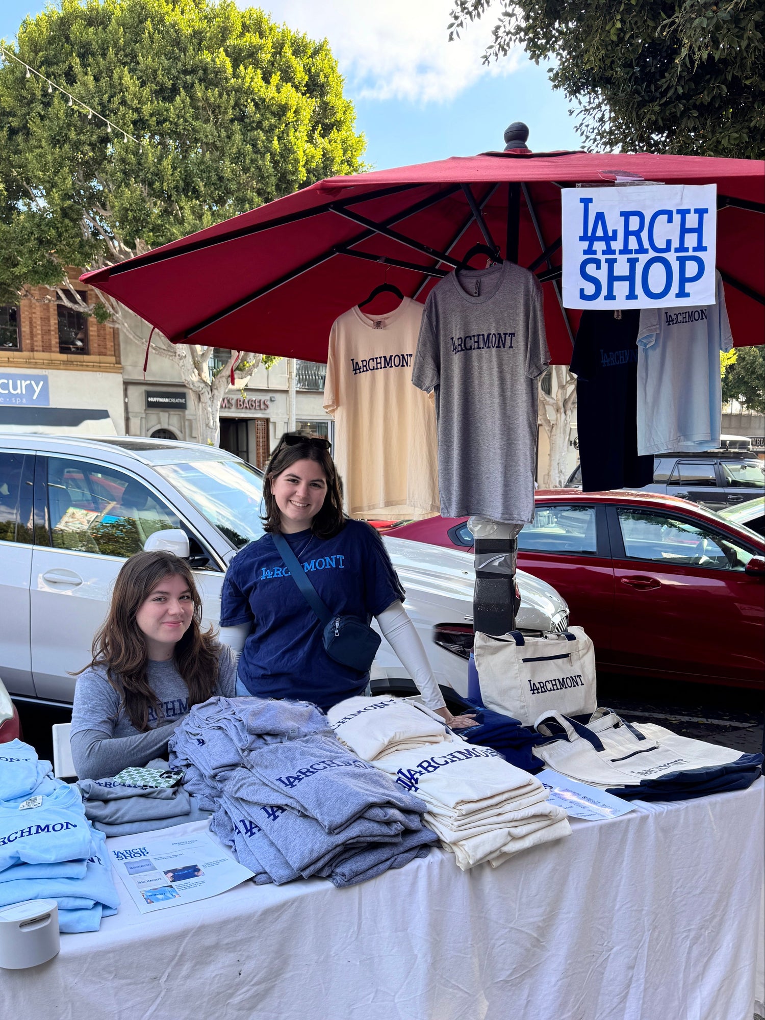 We design shirts, bags, and now hats, and we are always working on new ideas. Beyond Larchmont merch, we are also growing. We recently created a shirt dedicated to our college, Denison University, where we both attended. This is just the beginning, and LarchShop will continue to expand with new designs and new communities in mind.